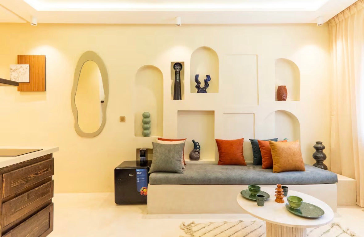 Découvrez Boss , un appartement élégant et cosy situé au cœur de Guéliz , à quelques pas du centre commercial Carré Eden . Conçu par un architecte, ce logement 2 pièces offre un jacuzzi privé , parfait pour se détendre après une journée à explorer Marrakech, tout en profitant d'un cadre intimiste et confortable.