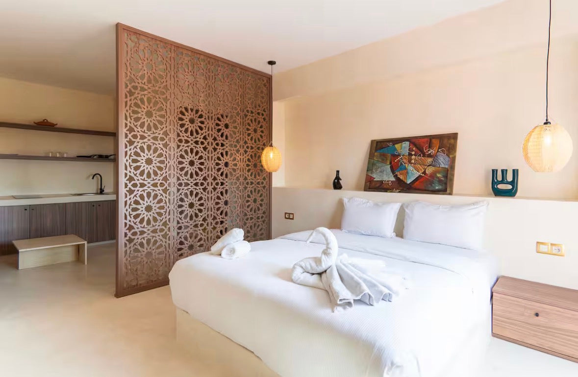 Bienvenue au Simba, un studio élégant et chaleureux situé au cœur de Marrakech. Idéal pour 2 voyageurs, ce logement vous offre un cadre raffiné, confortable et une magnifique vue pour profiter pleinement de votre séjour dans la ville rouge.