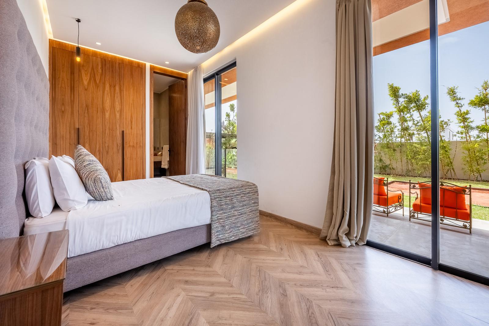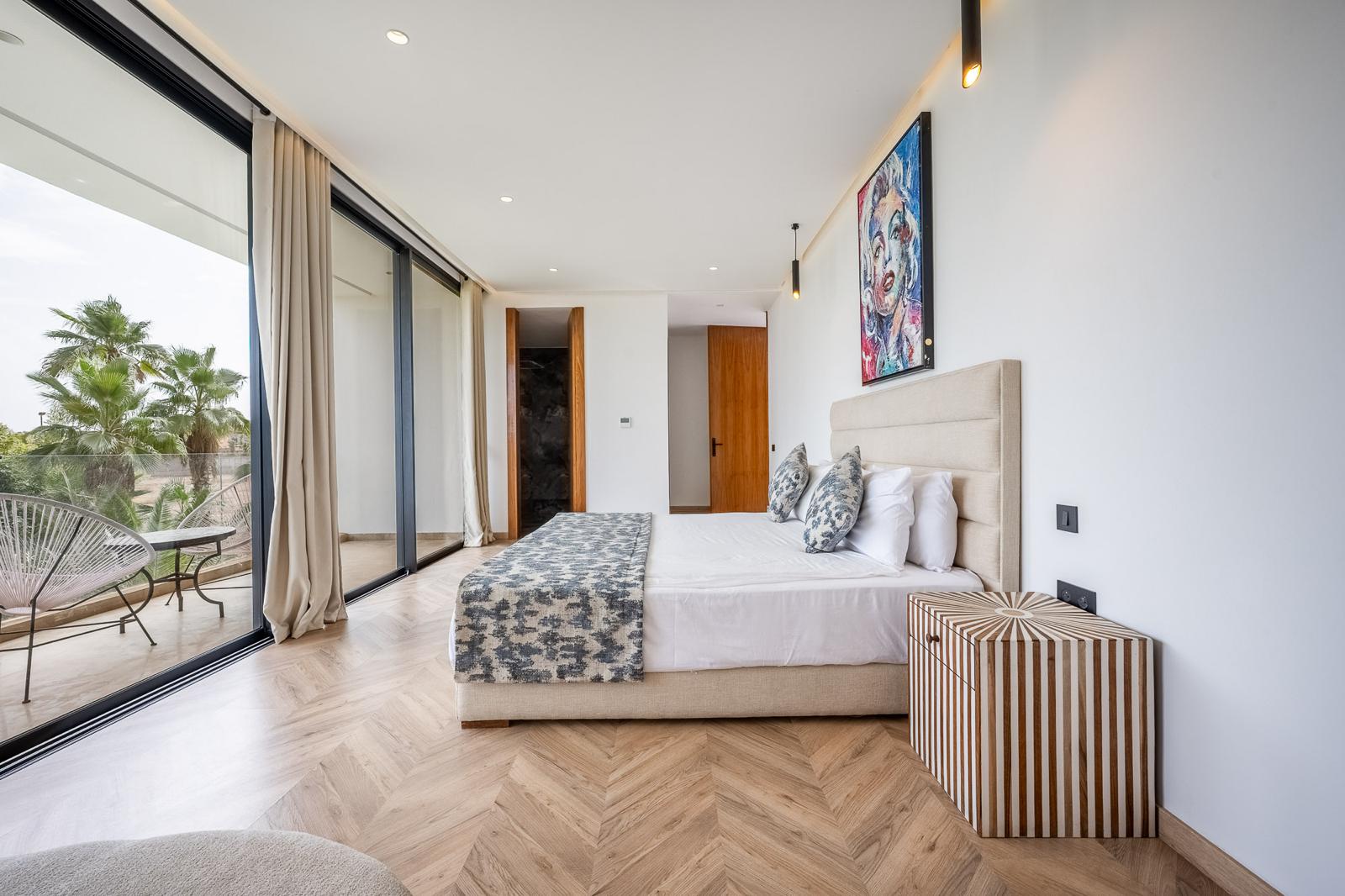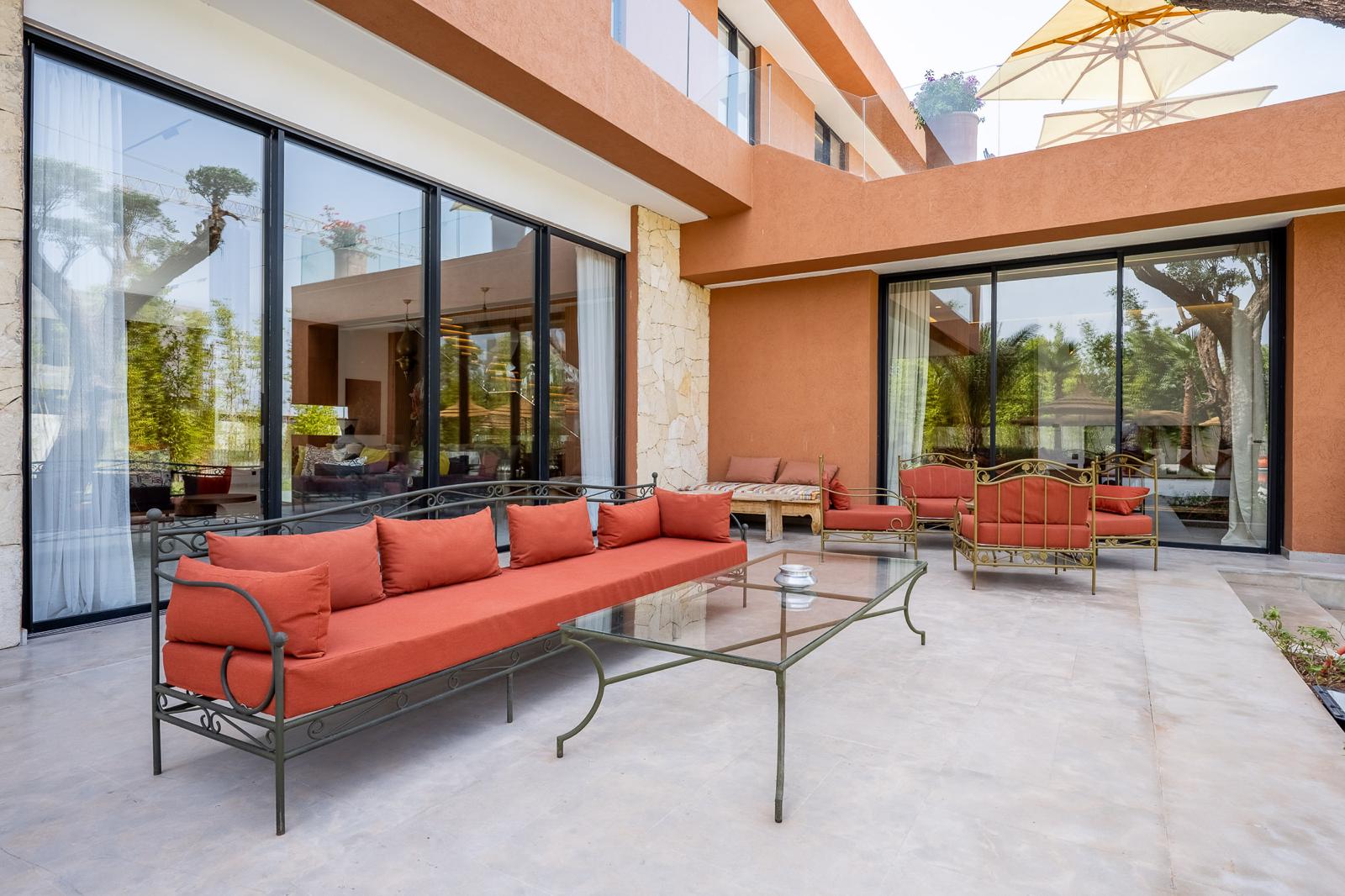 Nestled in one of the safest neighborhoods of Marrakech, just 5 minutes from the city center, Villa Samy is an oasis of comfort, refinement, and well-being. Facing an international hospital and just two minutes from the large Carrefour supermarket, this exceptional property promises you a unique experience in a sumptuous setting that blends modernity, tradition, and high-end amenities.
