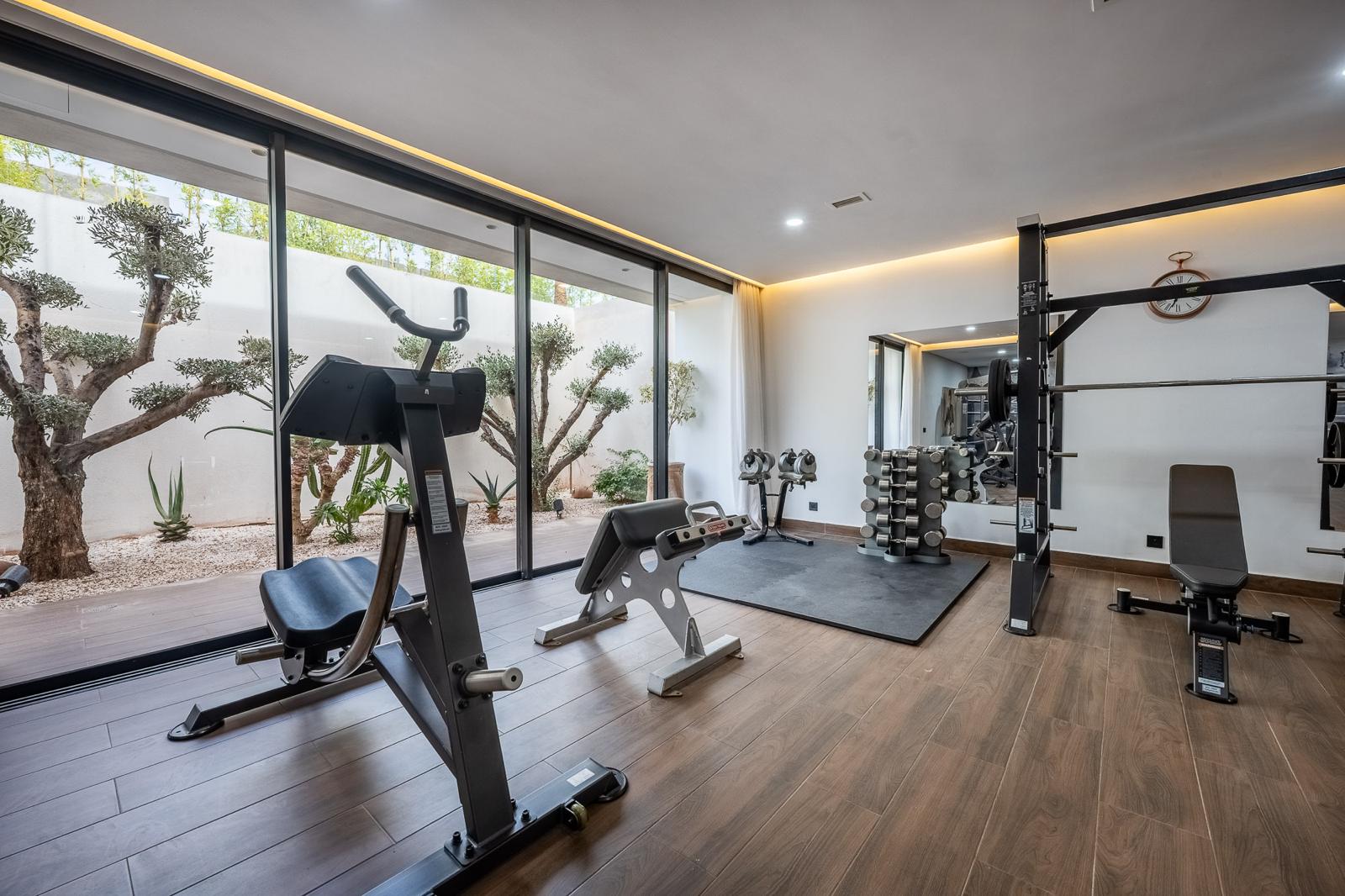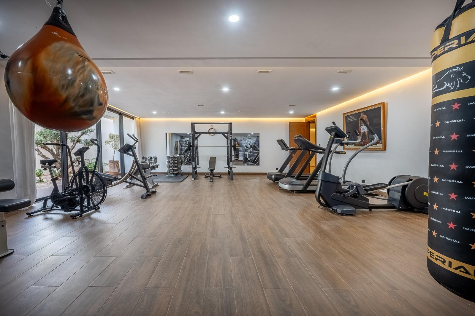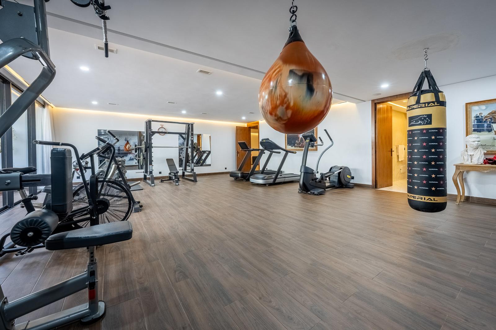 Professional gym of 120 m² with high-end equipment and attached bathroom