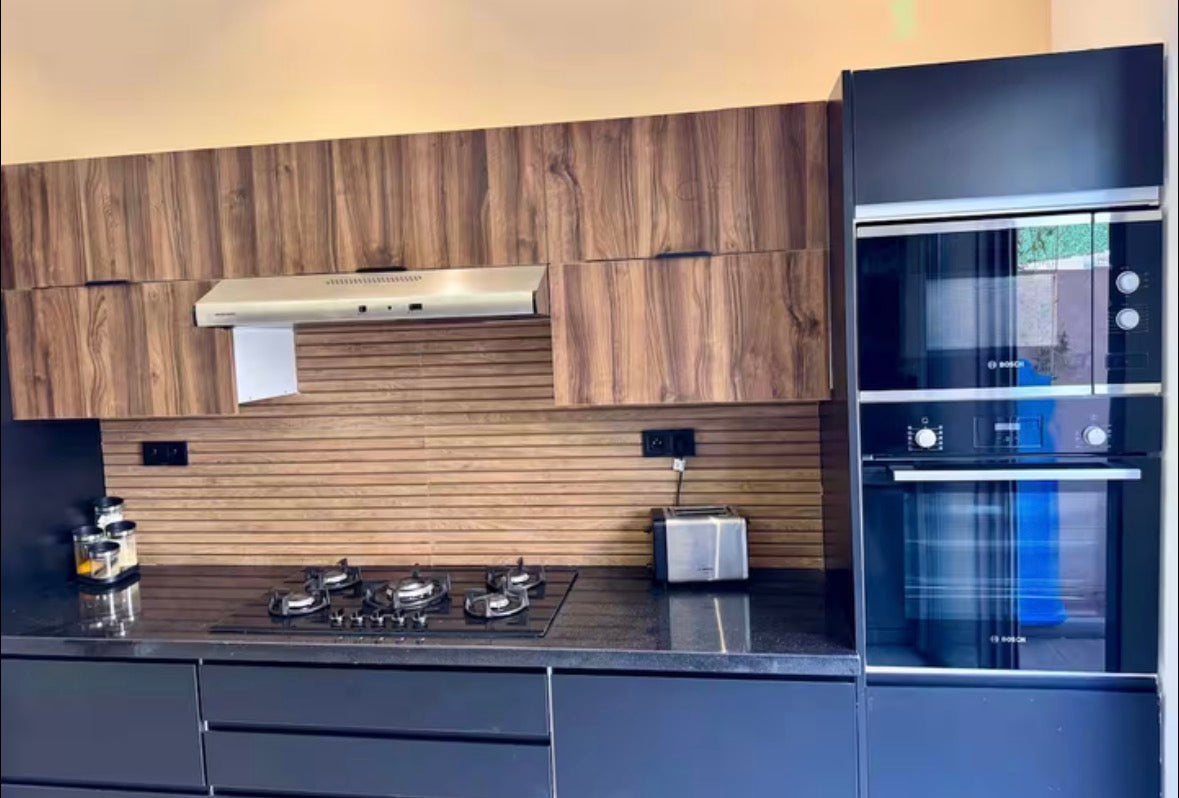 • Cuisine complète : four, micro-ondes, réfrigérateur, congélateur, machine à café, bouilloire, vaisselle, verres à vin, etc.