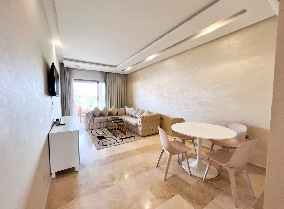 Situé au sein de la prestigieuse résidence Prestigia Golf, l’appartement Le Zaka est une véritable pépite pour un séjour confortable et élégant à Marrakech. Parfaitement adapté aux couples, petites familles ou voyageurs en quête de tranquillité, ce logement combine modernité, raffinement et praticité.